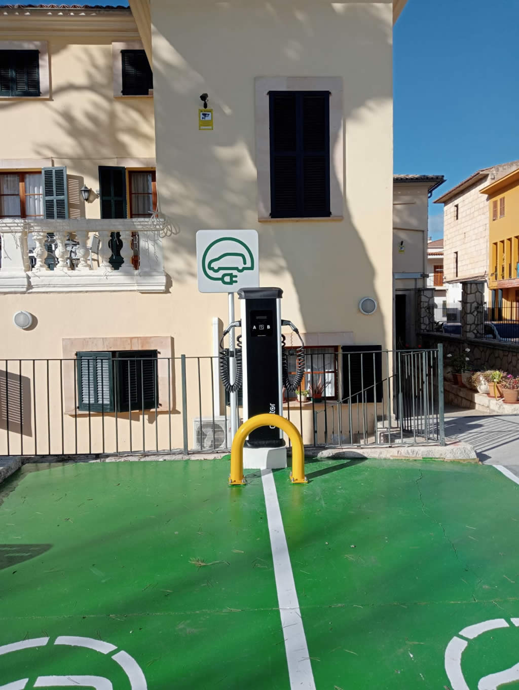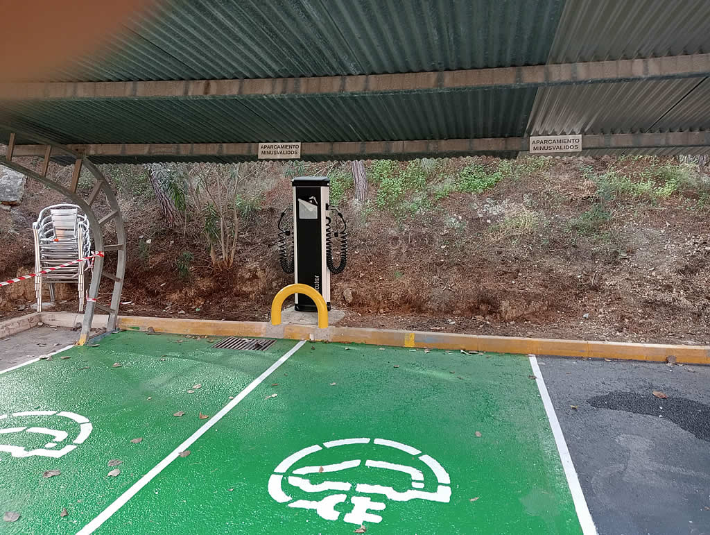 Instalación de punto de recarga Circuitor URBAN T22 con adaptación de la red eléctrica existente para vehículos y obra civil.