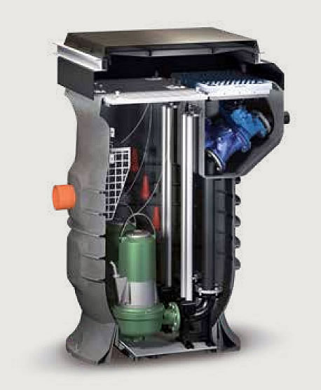 La estación elevadora MAXISOL está formada por un depósito de polietileno, con fondo perfilado para la recogida y evacuación de aguas pluviales o residuales. En su interior hay un sistema de bombeo controlado por interruptores de nivel flotantes y panel electrónico. Se puede equipar con cámara de control de valva premontada. El sistema es adecuado para elevar unidades de tamaño medio con tuberías de diámetro máximo DN 80.