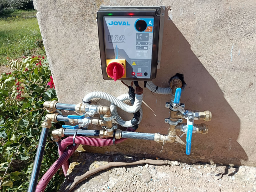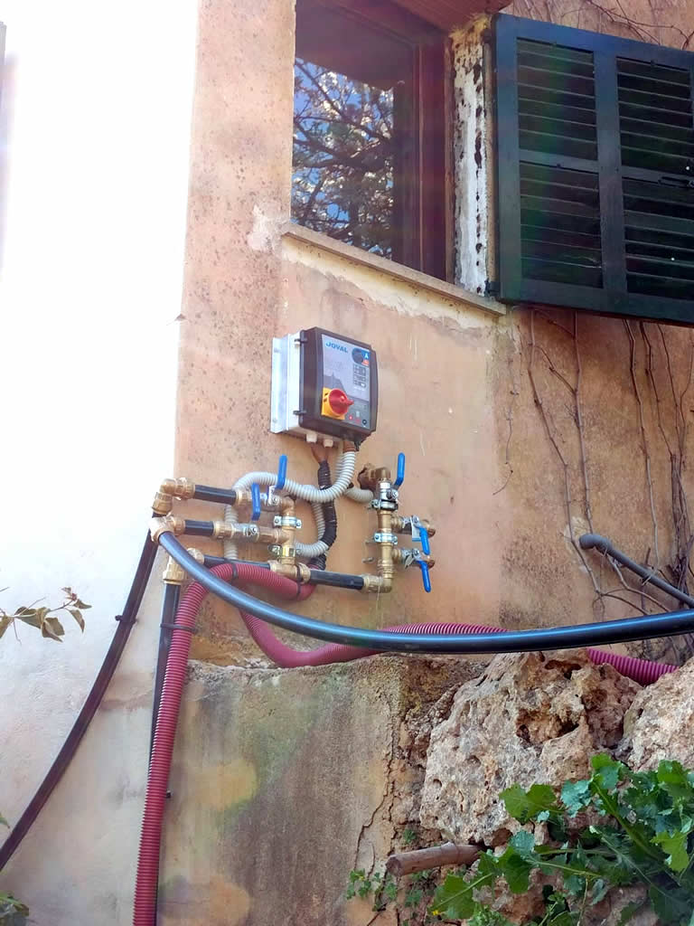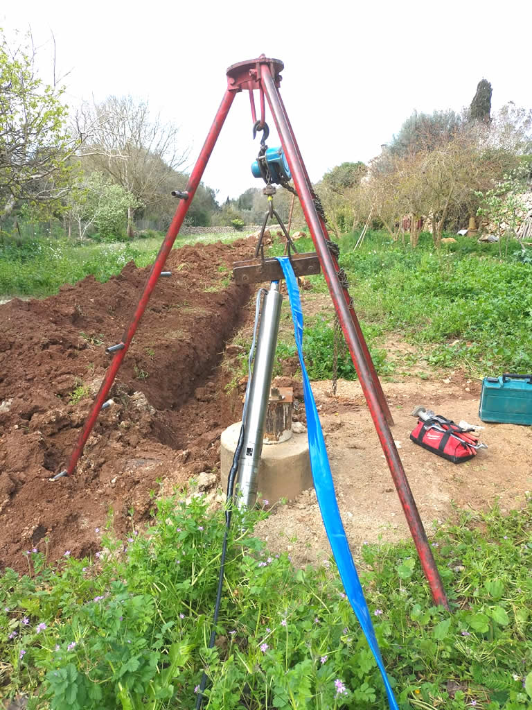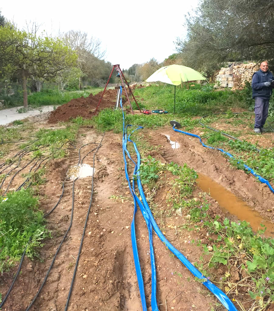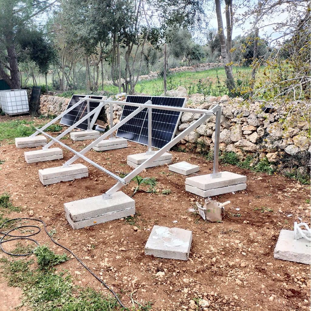 Instalación para riego solar en Costitx para 70 metros de profundidad, usando 4 placas solares de 550 W y una bomba solar HSB 1000 W