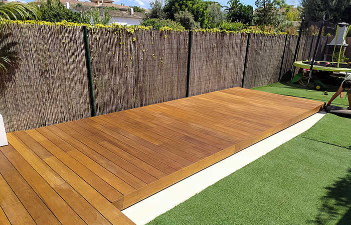 Piscina de fibra smart con tarima flotante enrailada en Palma