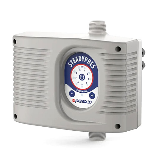 STEADYPRES es un dispositivo electrónico de mando y control, basado en la tecnología variador, para combinar con una electrobomba de superficie o sumergible, MONOFÁSICA o TRIFÁSICA, con potencia de hasta 1.5 HP (1.1 kW). Se utiliza para el suministro de agua doméstica y de riego; se adapta a todo tipo de sistemas de presurización, incluso a los ya existentes, garantizando el máximo confort, aumentando la vida media del sistema y permitiendo un considerable ahorro de energía.
